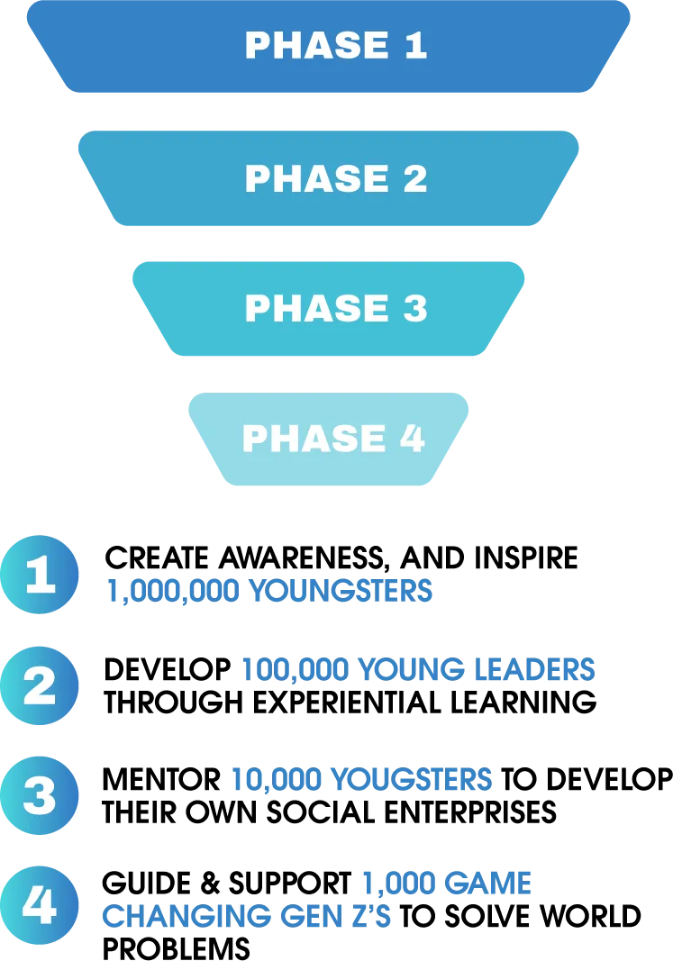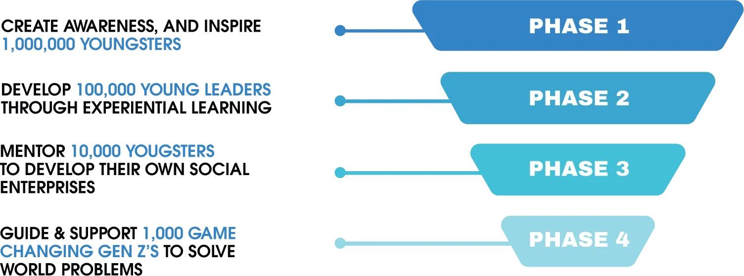 To build a sustainable & collaborative community for one million youngsters across the globe to achieve holistic success and unleash their potential.